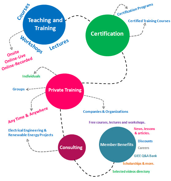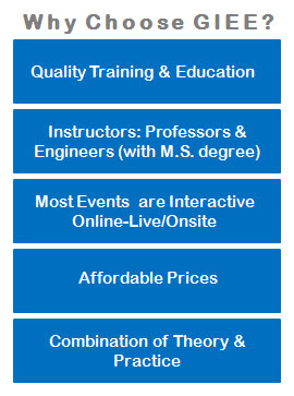We offer a variety of online and onsite training courses, workshops and lectures. We also offer hands-on training for real world experience. High-quality training combining the theory and practice is our priority. The GIEE team includes the industries top engineers holding at least M.S. degree to guarantee the quality.